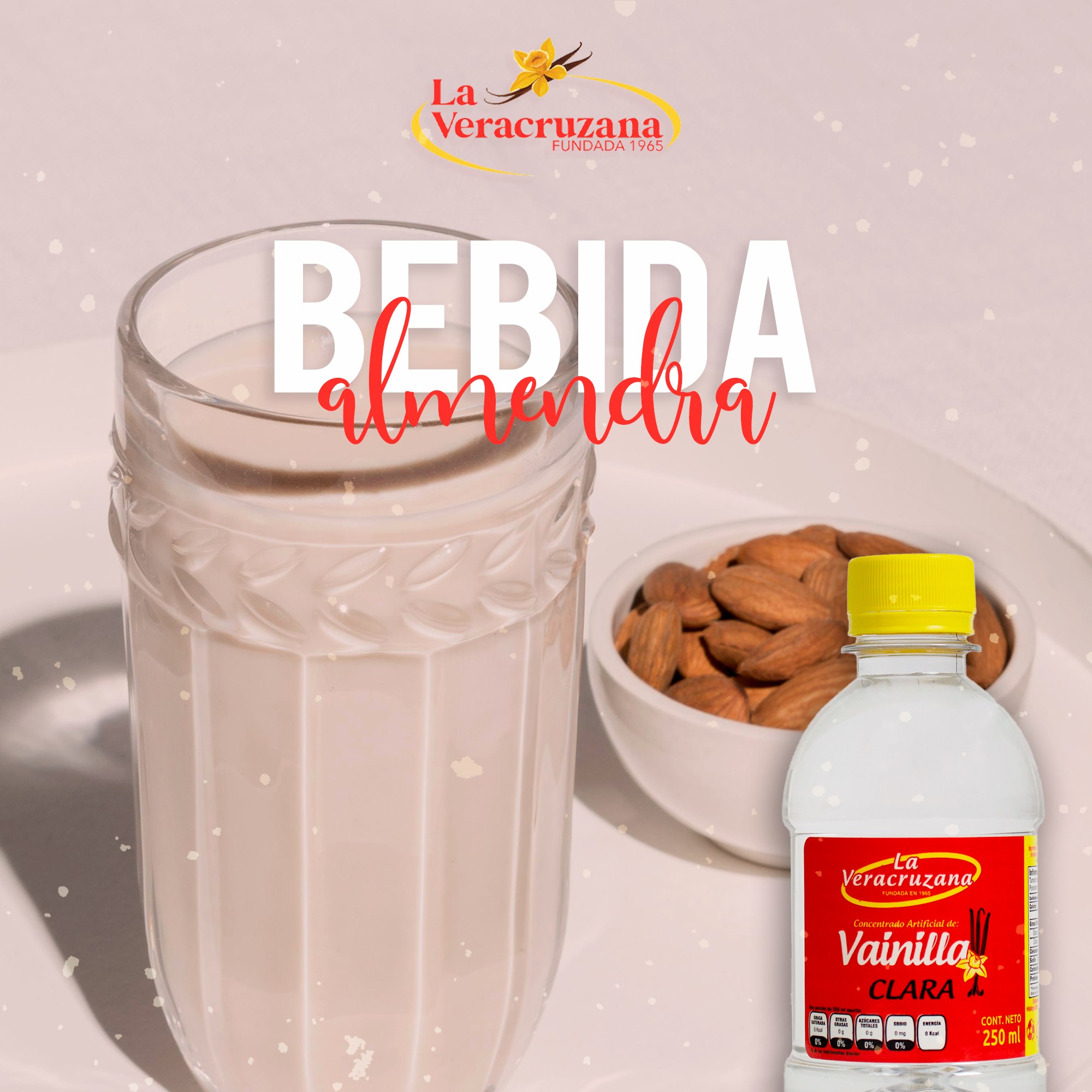 1. Licúa la Leche Evaporada con las almendras, el azúcar, el agua y Vainilla La Veracruzana.